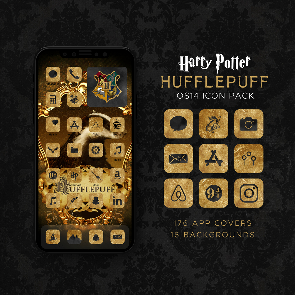 Harry Potter Hufflepuff iOS14 Icon Theme Pack, iOS14 Icons Bundle, IOS Themes, Harry Potter icons